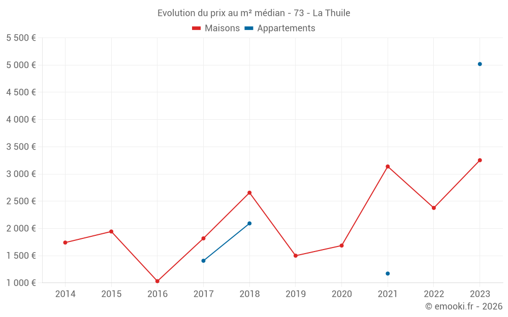 Carte des prix de l'immobilier dans la commune de la Thuile, choississez une section pour voir les transactions par parcelle.