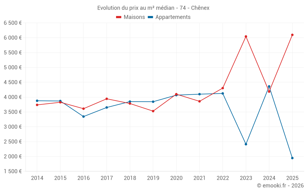 Carte des prix de l'immobilier dans la commune de Chênex, choississez une section pour voir les transactions par parcelle.