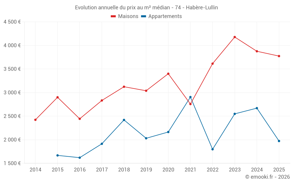 Le prix au m² des maisons a diminué de 10% depuis 2 ans, mais il a augmenté de 56% en 11 ans.