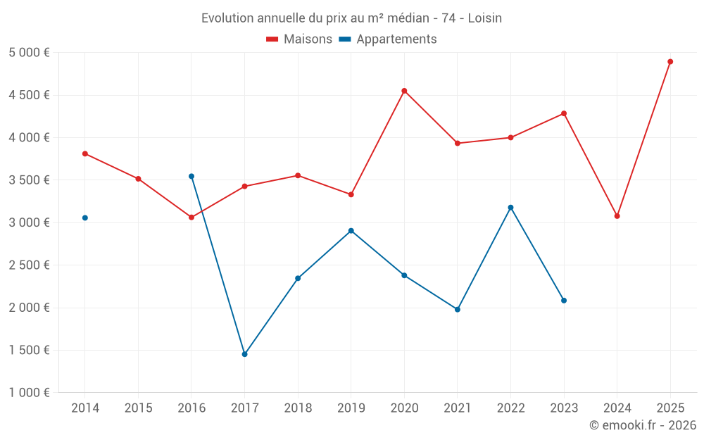 Le prix médian sur les 24 transactions de maisons des 24 derniers mois dans la commune de Loisin était de 4 232 € par mètre carré pour une valeur foncière médiane de 397 500 €. Sur cette période 60% des transactions se sont situées entre 3 011 et 4 995 € par mètre carré (du 2ème au 8ème déciles).