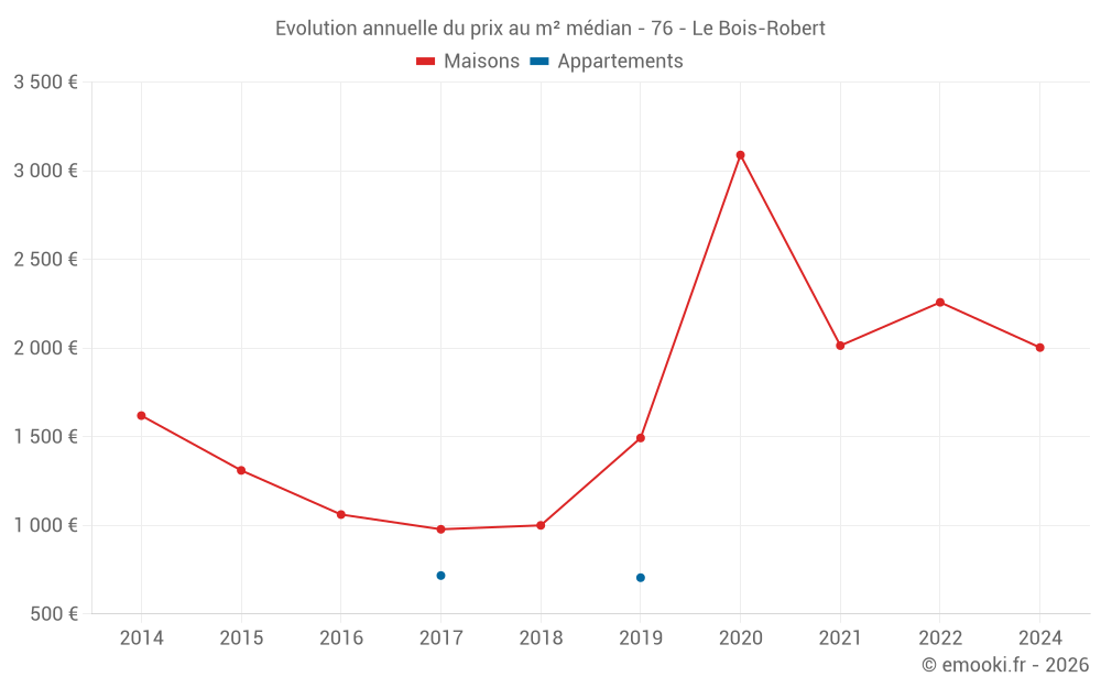 Prix médian sur les 2 transactions des 120 derniers mois.