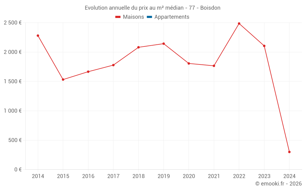 Evolution du prix au m² médian des maisons