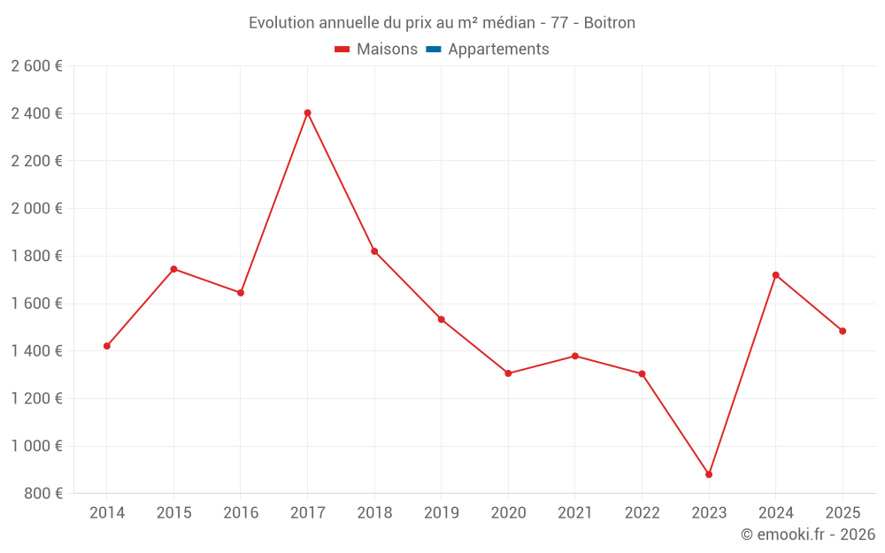 Le prix au m² des maisons a augmenté de 14% depuis 3 ans, mais il a diminué de 38% en 8 ans.