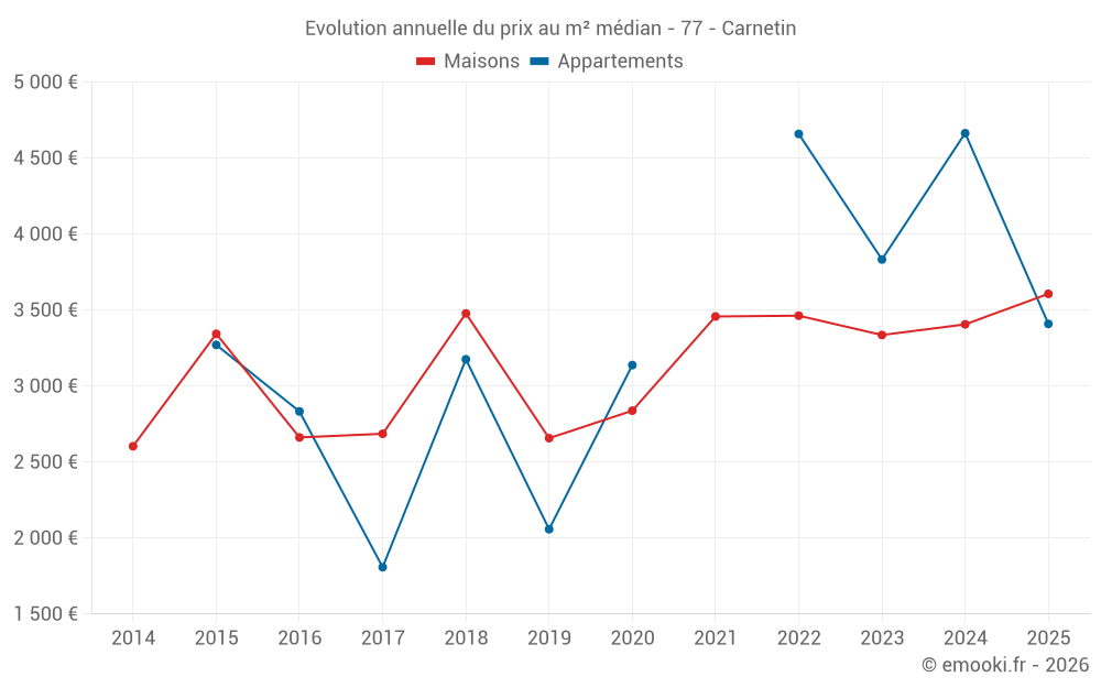 Carte des prix de l'immobilier dans la commune de Carnetin, choississez une section pour voir les transactions par parcelle.