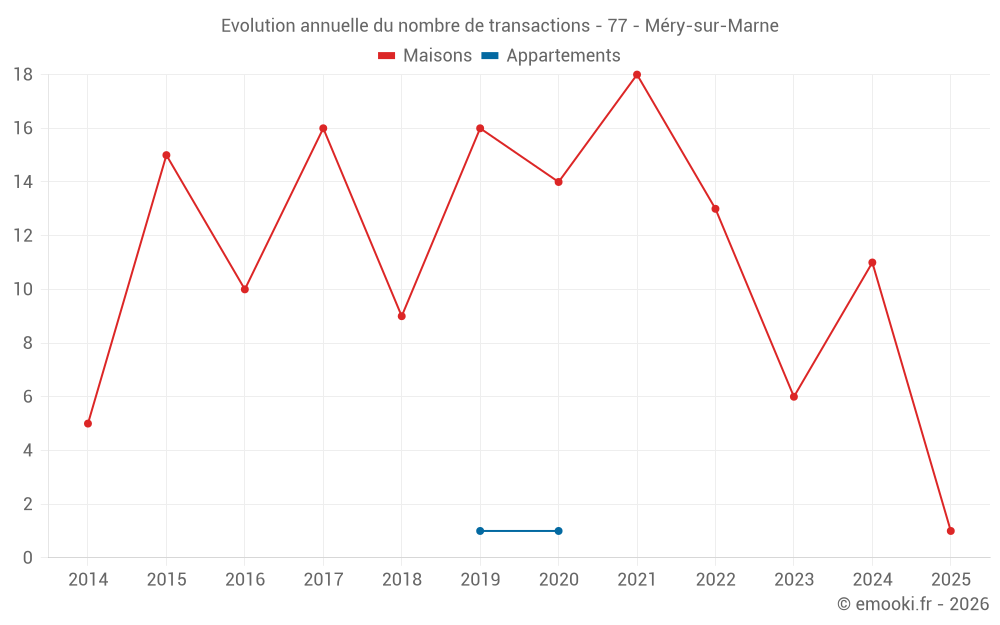 Le prix médian sur les 17 transactions de maisons des 24 derniers mois dans la commune de Méry-sur-Marne était de 2 344 € par mètre carré pour une valeur foncière médiane de 118 000 €. Sur cette période 60% des transactions se sont situées entre 1 531 et 3 060 € par mètre carré (du 2ème au 8ème déciles).