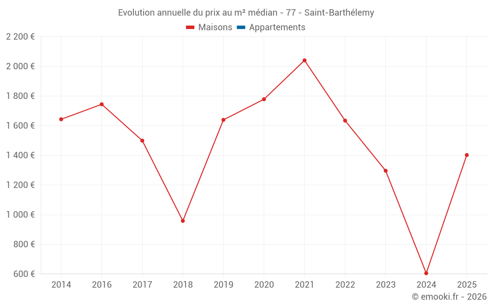 Evolution du prix au m² médian des maisons
