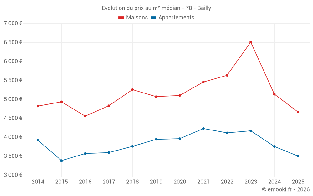 Carte des prix de l'immobilier dans la commune de Bailly, choississez une section pour voir les transactions par parcelle.