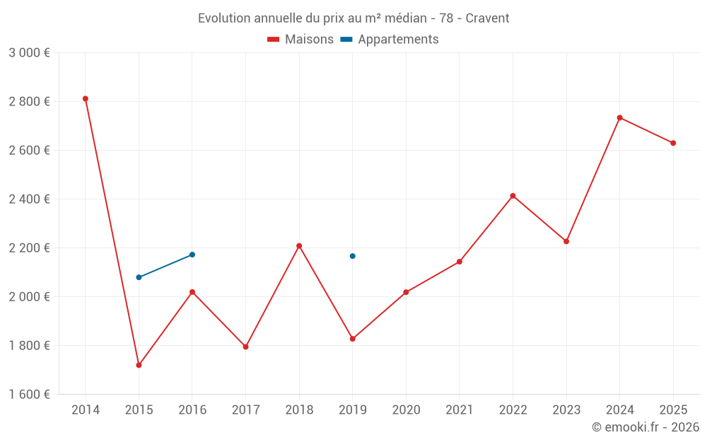 Carte des prix de l'immobilier dans la commune de Cravent, choississez une section pour voir les transactions par parcelle.