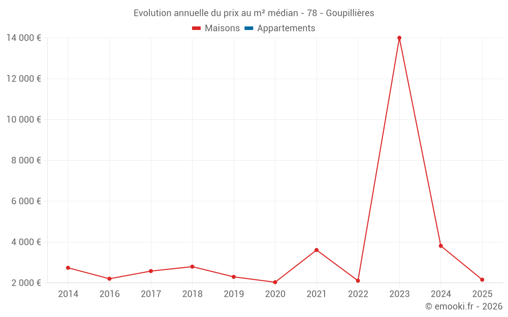 Carte des prix de l'immobilier dans la commune de Goupillières, choississez une section pour voir les transactions par parcelle.