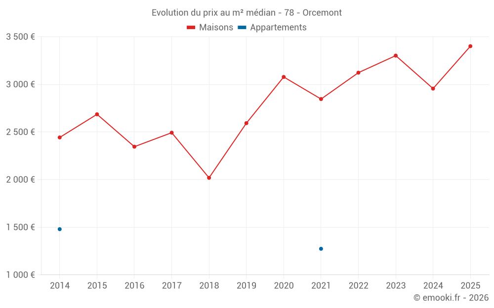 Carte des prix de l'immobilier dans la commune d'Orcemont, choississez une section pour voir les transactions par parcelle.