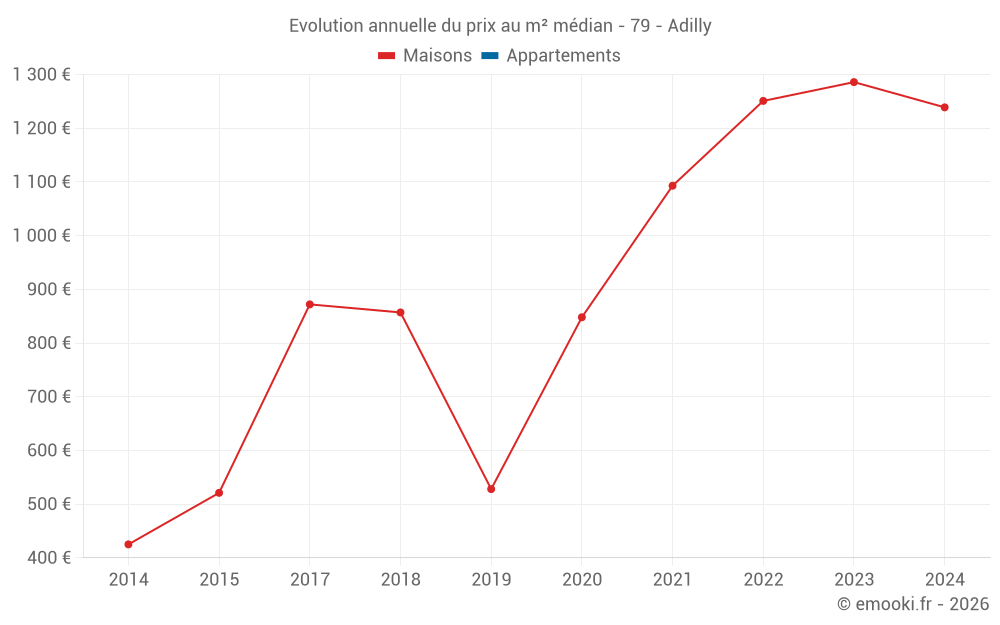 Prix médian sur les 16 transactions des 48 derniers mois.