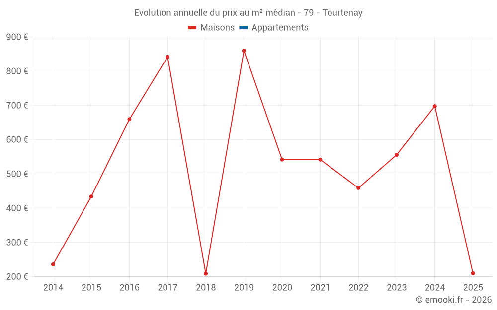 Attention, dernière année incomplète. Projections effectuées sur la base des proportions entre semestres de l'année précédente au niveau départemental/national et par catégorie de bien.