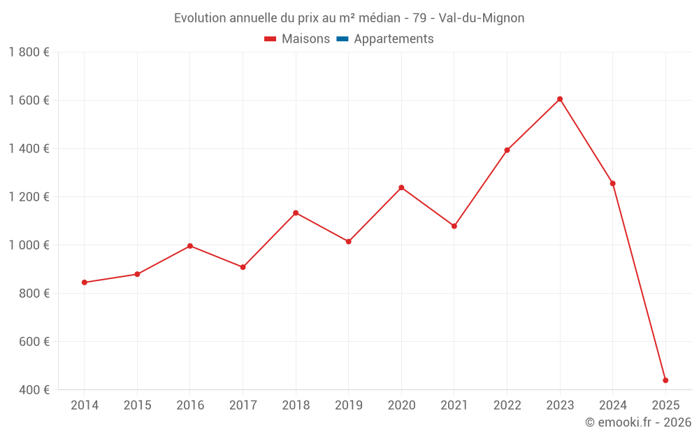 Evolution du prix au m² médian des maisons