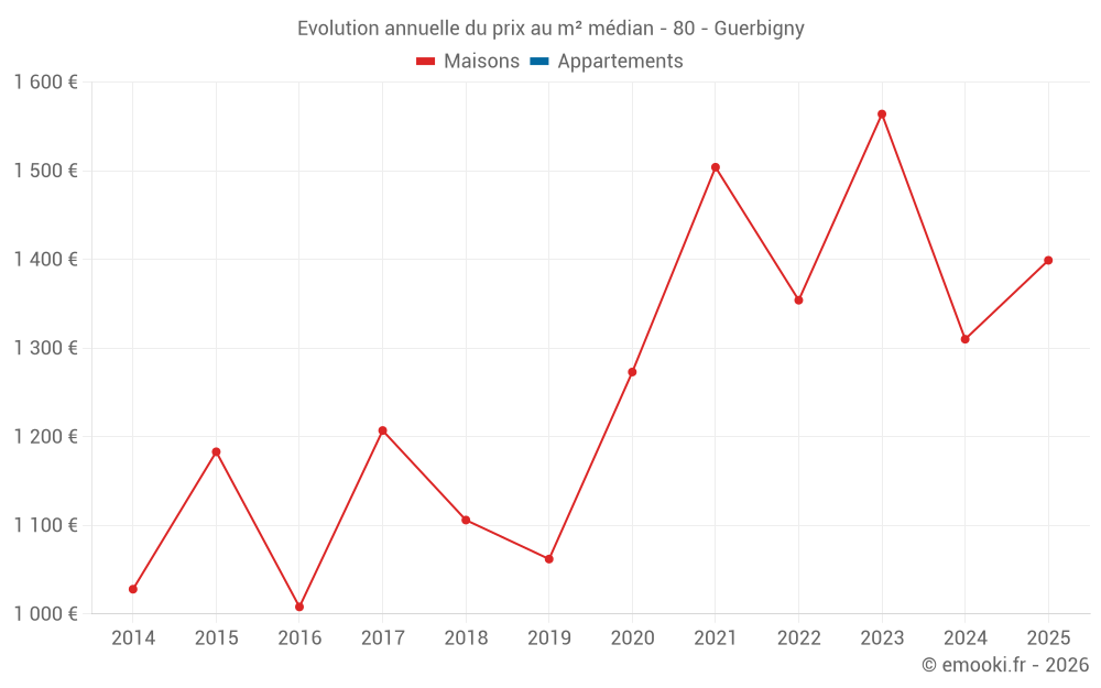 Carte des prix de l'immobilier dans la commune de Guerbigny, choississez une section pour voir les transactions par parcelle.