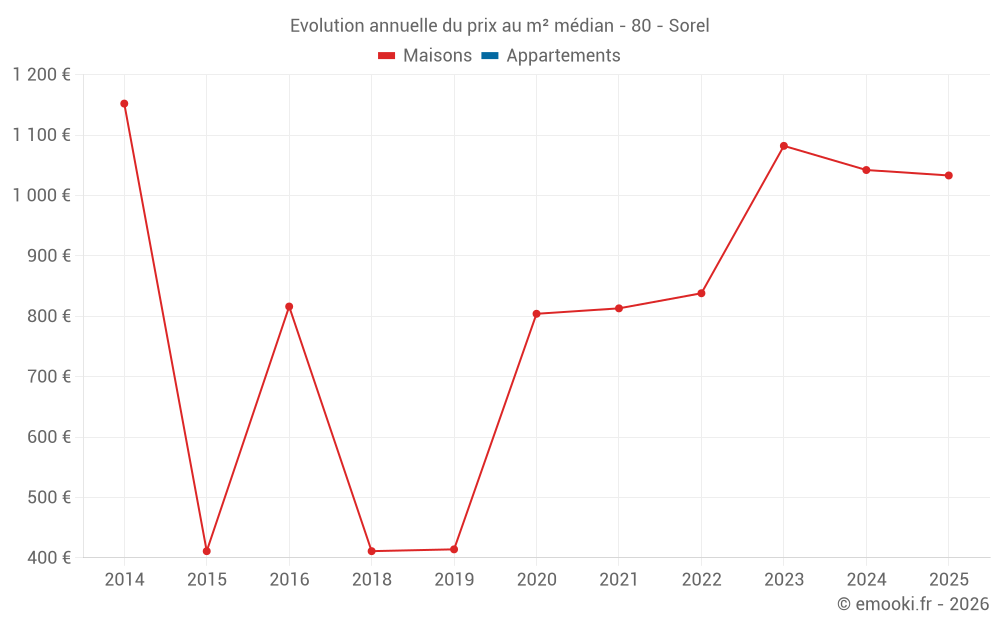 Evolution du prix au m² médian des maisons