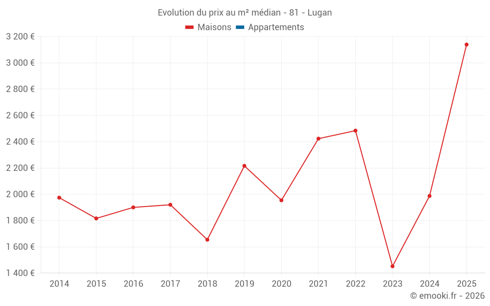 Carte des prix de l'immobilier dans la commune de Lugan, choississez une section pour voir les transactions par parcelle.