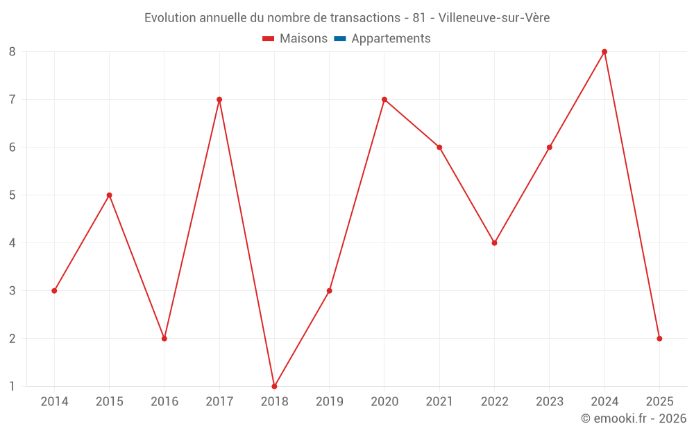 Carte des prix de l'immobilier dans la commune de Villeneuve-sur-Vère, choississez une section pour voir les transactions par parcelle.