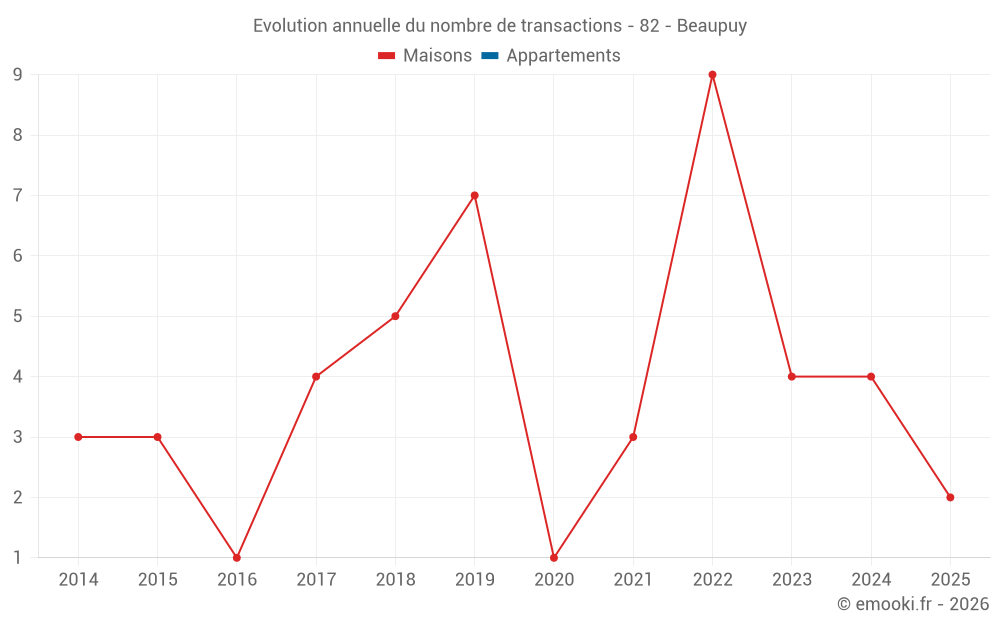 Carte des prix de l'immobilier dans la commune de Beaupuy, choississez une section pour voir les transactions par parcelle.