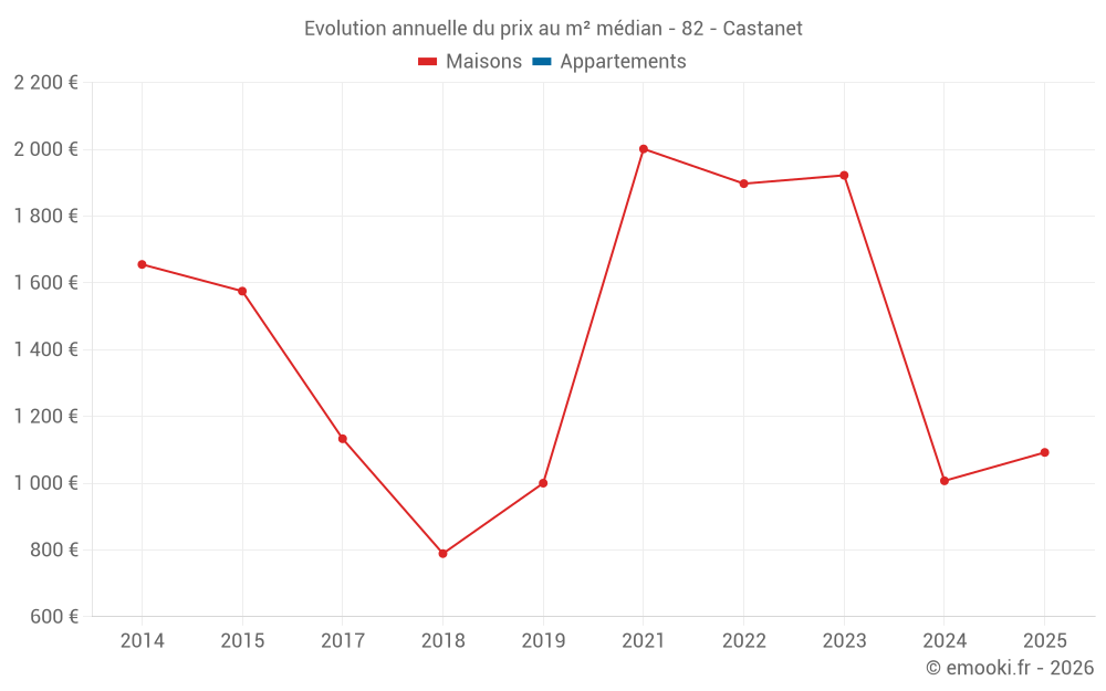 Attention, dernière année incomplète. Projections effectuées sur la base des proportions entre semestres de l'année précédente au niveau départemental/national et par catégorie de bien.