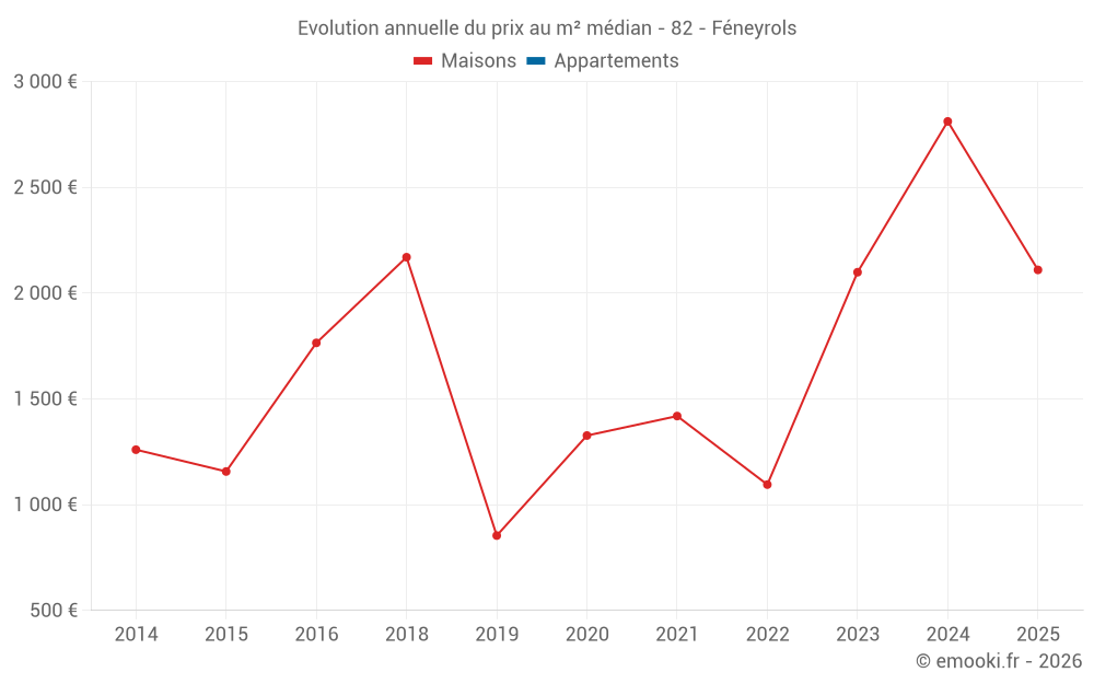 Evolution du prix au m² médian des maisons