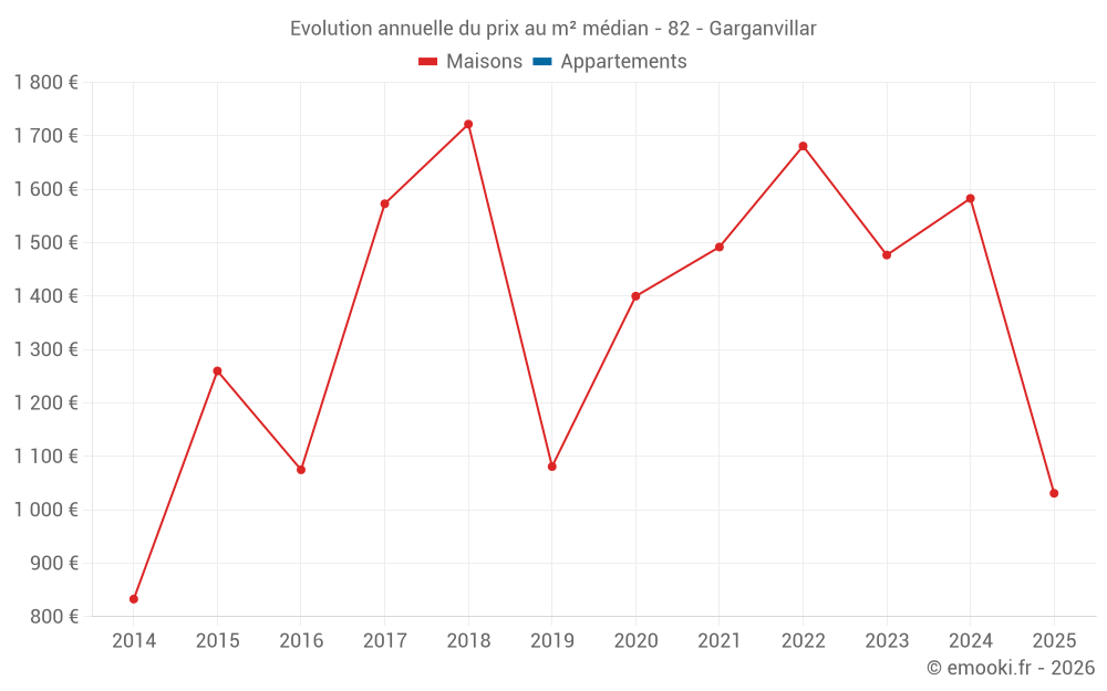 Le prix médian sur les 19 transactions de maisons des 24 derniers mois dans la commune de Garganvillar était de 1 583 € par mètre carré pour une valeur foncière médiane de 150 000 €. Sur cette période 60% des transactions se sont situées entre 1 029 et 2 023 € par mètre carré (du 2ème au 8ème déciles).