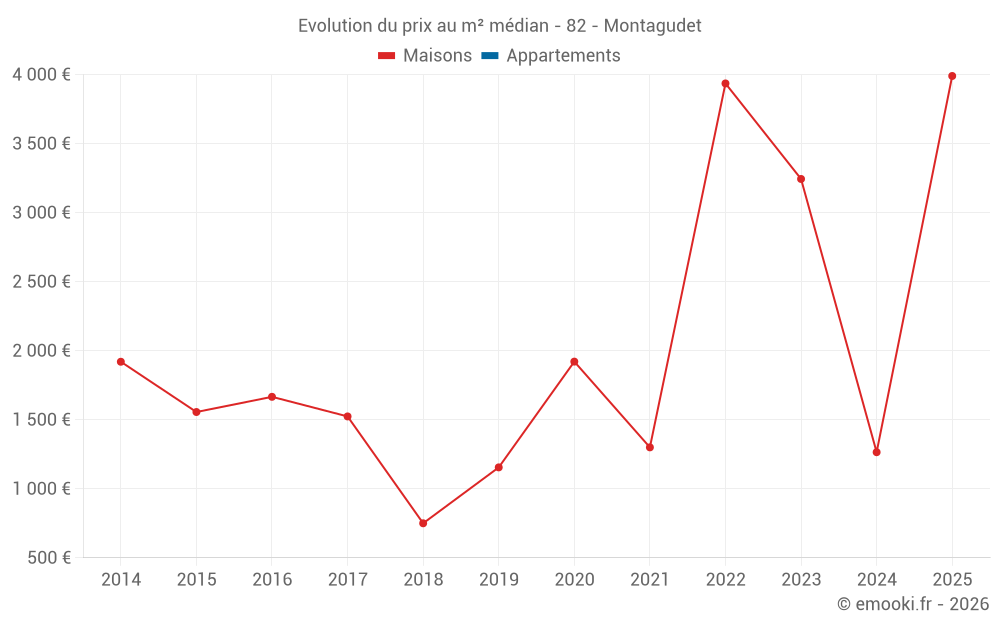 Carte des prix de l'immobilier dans la commune de Montagudet, choississez une section pour voir les transactions par parcelle.