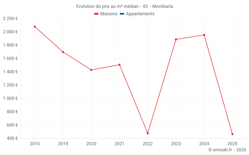 Attention, dernière année incomplète. Projections effectuées sur la base des proportions entre semestres de l'année précédente au niveau départemental/national et par catégorie de bien.