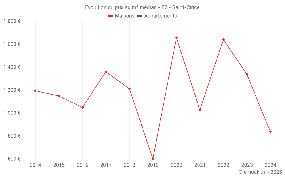 Attention, dernière année incomplète. Projections effectuées sur la base des proportions entre semestres de l'année précédente au niveau départemental/national et par catégorie de bien.