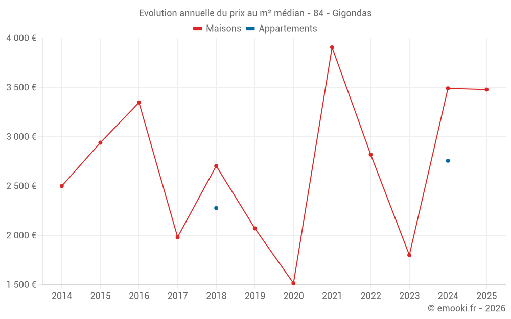 Prix médian sur les 2 transactions des 120 derniers mois.