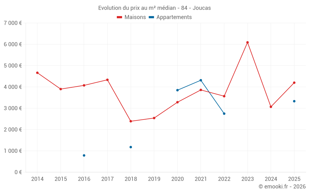 Carte des prix de l'immobilier dans la commune de Joucas, choississez une section pour voir les transactions par parcelle.