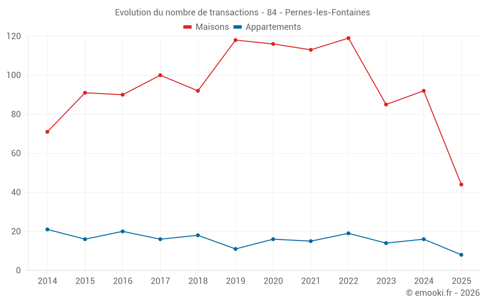Attention, dernière année incomplète. Projections effectuées sur la base des proportions entre semestres de l'année précédente au niveau départemental/national et par catégorie de bien.