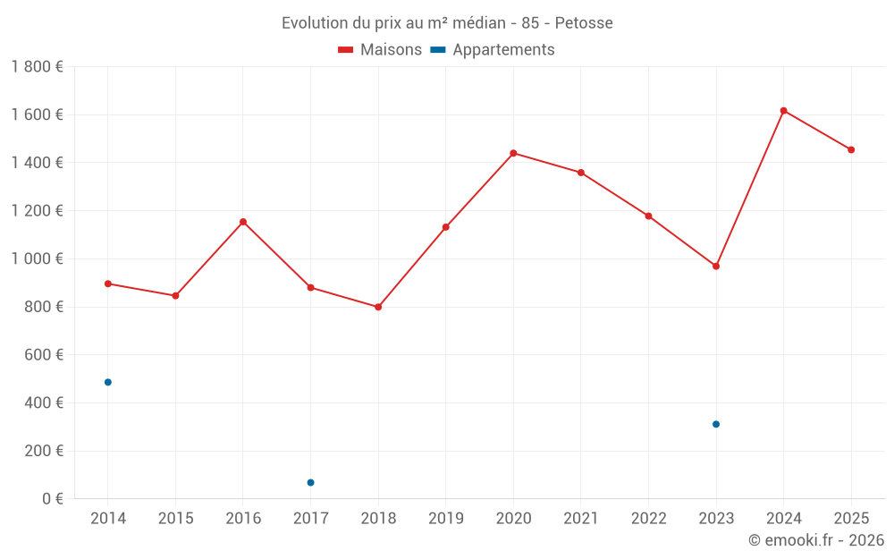 Carte des prix de l'immobilier dans la commune de Petosse, choississez une section pour voir les transactions par parcelle.