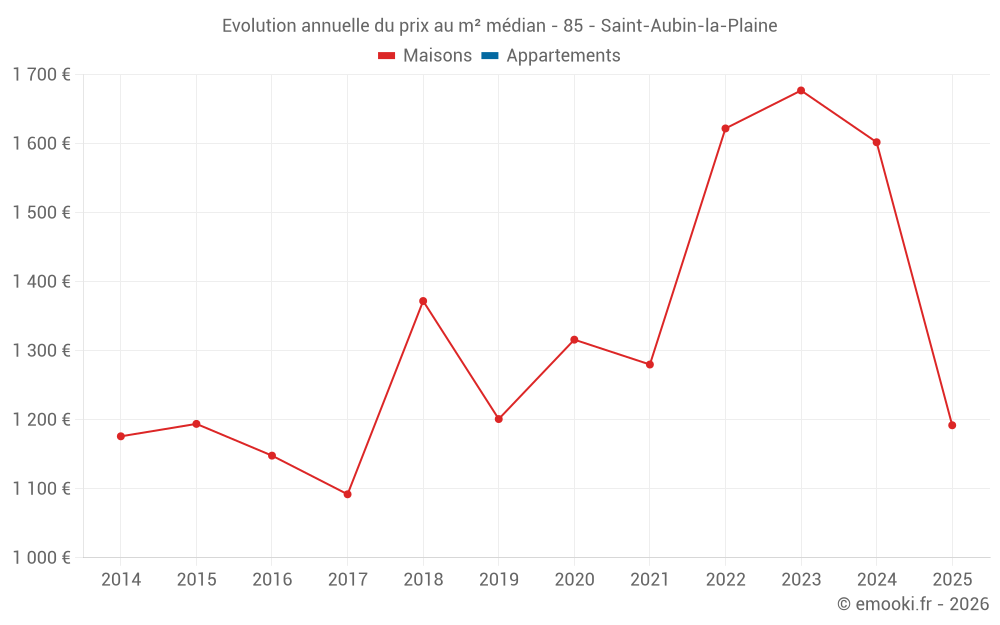 Le prix au m² des maisons a diminué de 29% depuis 2 ans, mais il a augmenté de 9.2% en 8 ans.