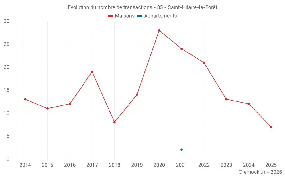 Attention, dernière année incomplète. Projections effectuées sur la base des proportions entre semestres de l'année précédente au niveau départemental/national et par catégorie de bien.