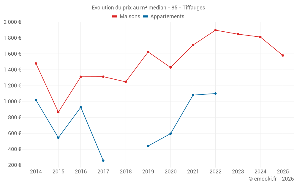 Carte des prix de l'immobilier dans la commune de Tiffauges, choississez une section pour voir les transactions par parcelle.