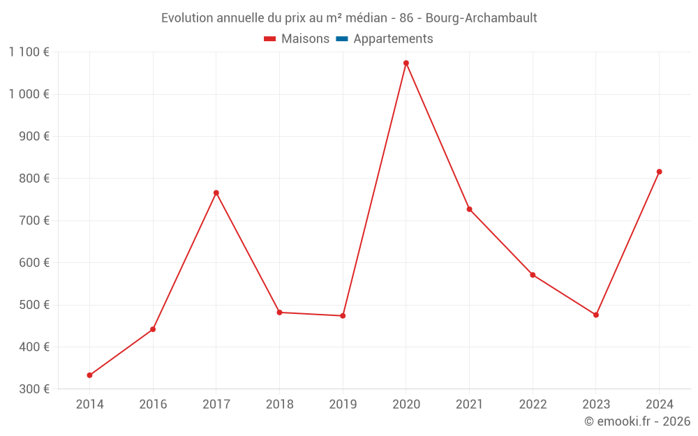 Evolution du prix au m² médian des maisons