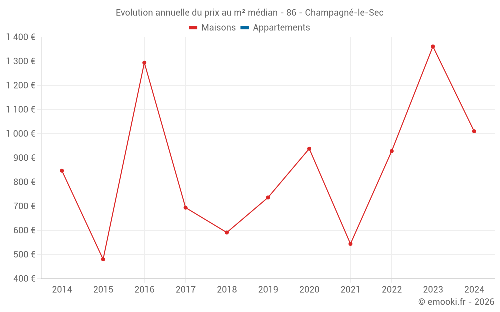 Carte des prix de l'immobilier dans la commune de Champagné-le-Sec, choississez une section pour voir les transactions par parcelle.