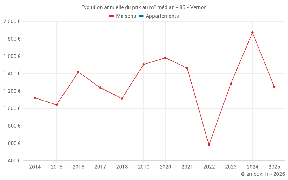 Evolution du prix au m² médian des maisons