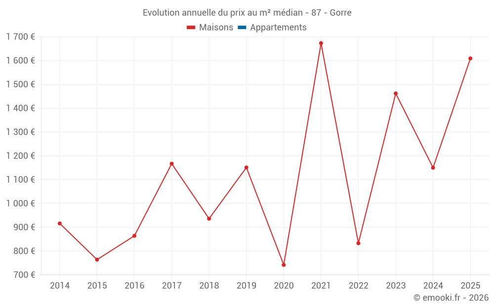 Le prix au m² des maisons a diminué de 3.8% depuis 4 ans, mais il a augmenté de 117% en 5 ans.
