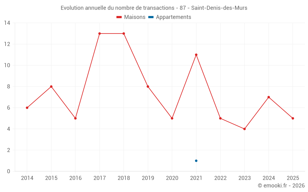 Le prix au m² des maisons a augmenté de 53% depuis 5 ans, mais il a diminué de 31% en 11 ans.