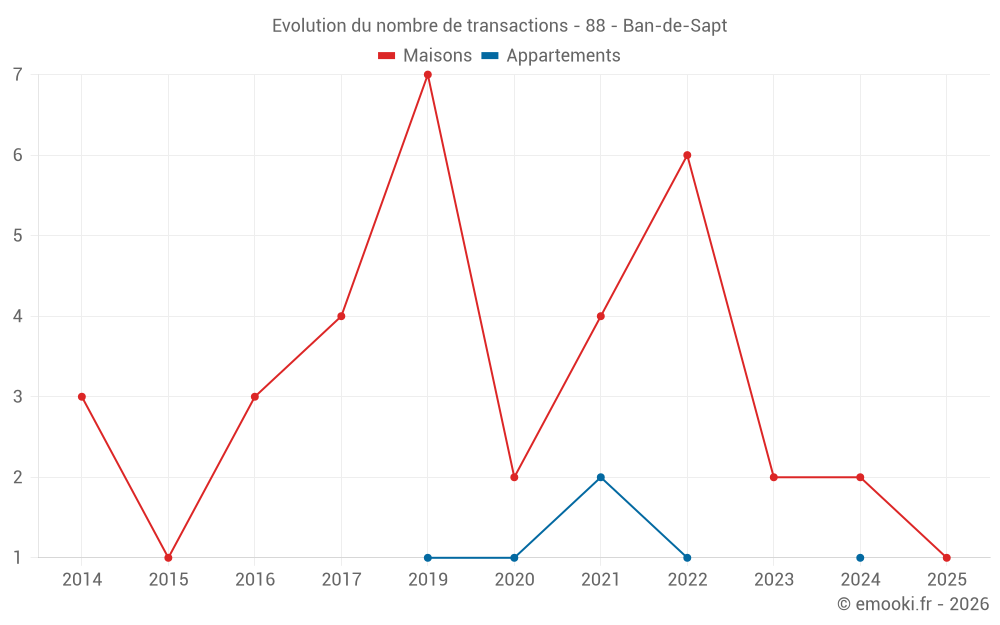 Carte des prix de l'immobilier dans la commune de Ban-de-Sapt, choississez une section pour voir les transactions par parcelle.