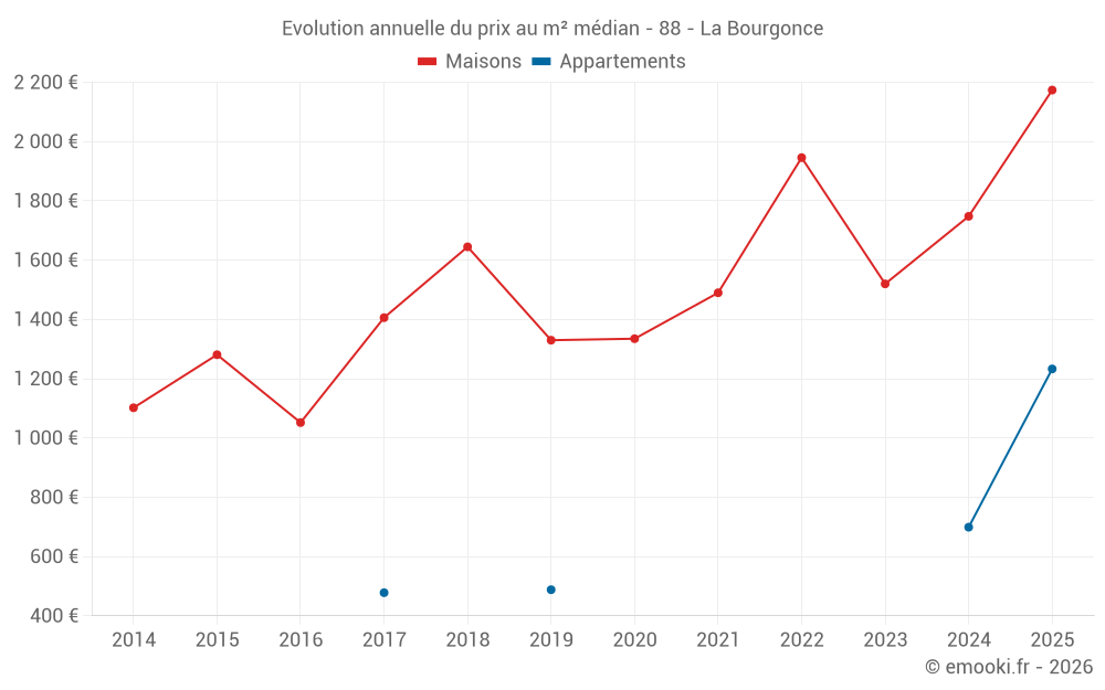 Prix médian sur les 14 transactions des 24 derniers mois.
