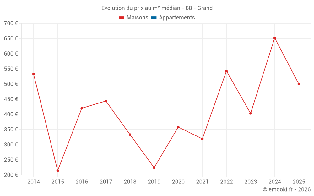 Carte des prix de l'immobilier dans la commune de Grand, choississez une section pour voir les transactions par parcelle.