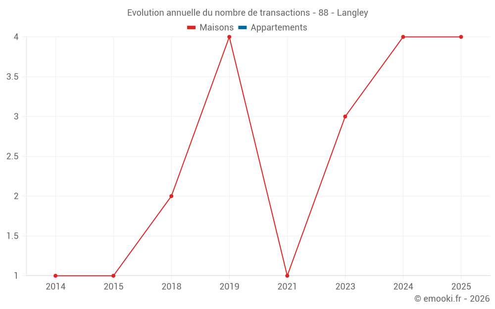 Le prix au m² des maisons a augmenté de 18% depuis 1 an, mais il a diminué de 1.7% en 6 ans.