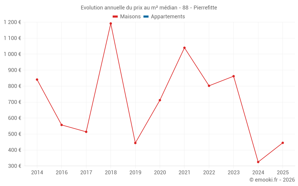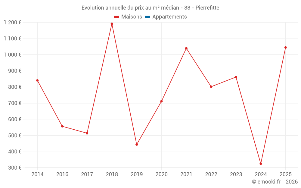 Evolution du prix au m² médian des maisons