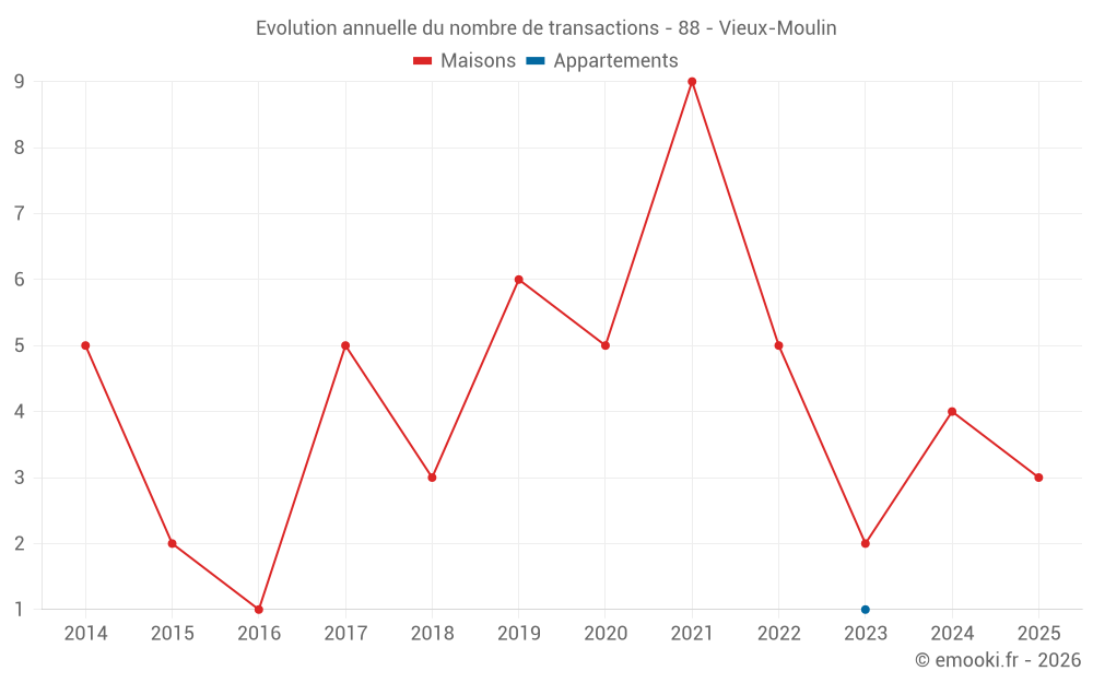 Carte des prix de l'immobilier dans la commune de Vieux-Moulin, choississez une section pour voir les transactions par parcelle.