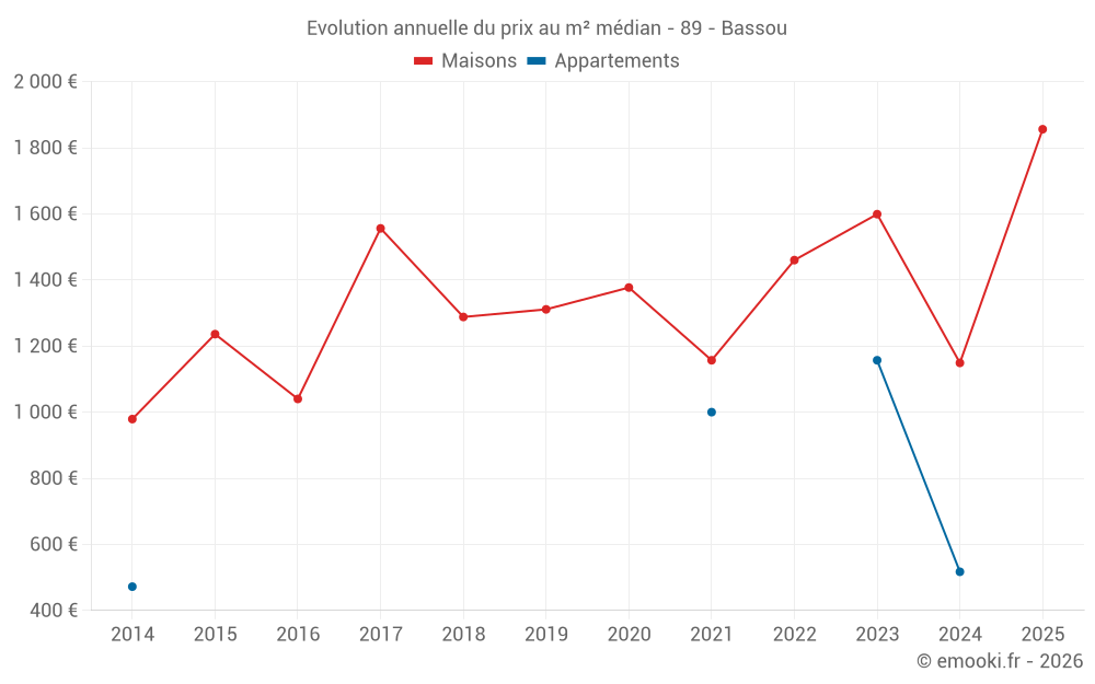 Le prix médian sur les 23 transactions de maisons des 24 derniers mois dans la commune de Bassou était de 1 361 € par mètre carré pour une valeur foncière médiane de 135 000 €. Sur cette période 60% des transactions se sont situées entre 1 035 et 1 670 € par mètre carré (du 2ème au 8ème déciles).
