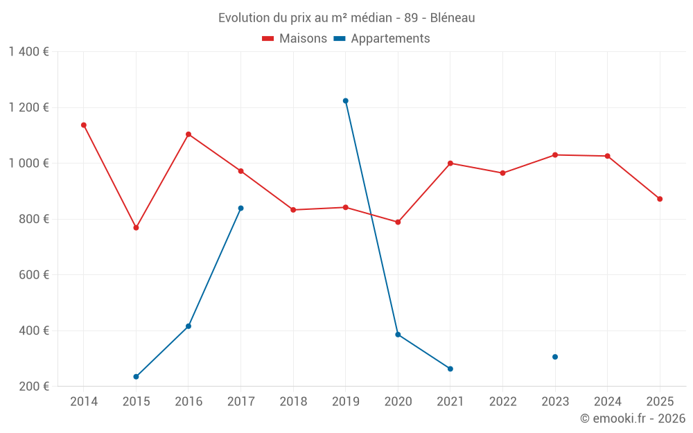 Attention, dernière année incomplète. Projections effectuées sur la base des proportions entre semestres de l'année précédente au niveau départemental/national et par catégorie de bien.