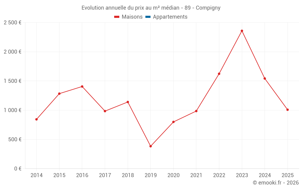 Attention, dernière année incomplète. Projections effectuées sur la base des proportions entre semestres de l'année précédente au niveau départemental/national et par catégorie de bien.