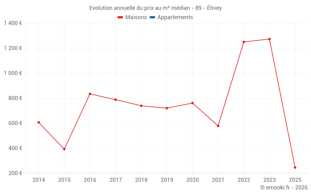 Attention, dernière année incomplète. Projections effectuées sur la base des proportions entre semestres de l'année précédente au niveau départemental/national et par catégorie de bien.